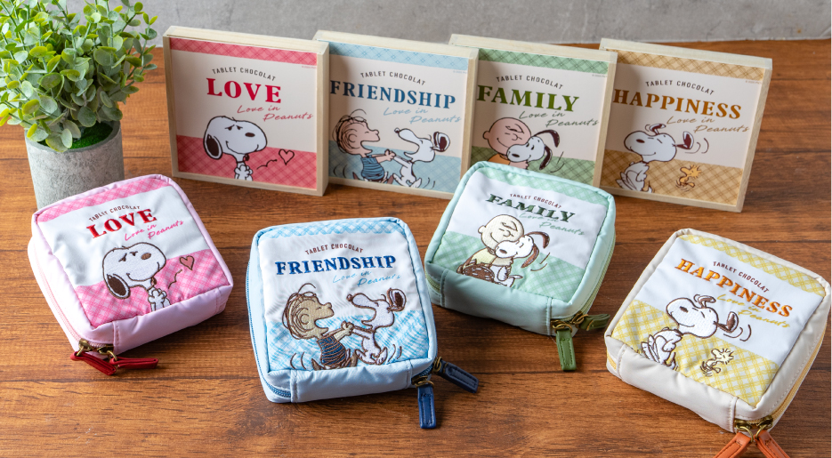 タブレットショコラのパッケージにそっくりなスクエアポーチ。 片手でしっかり持てるサイズ感に、底までガバッと開くファスナー、3つの内ポケットと機能性もばっちり。 タブレットショコラとセットでプレゼントしても喜ばれそう♪ ※2026/2/6発売予定
